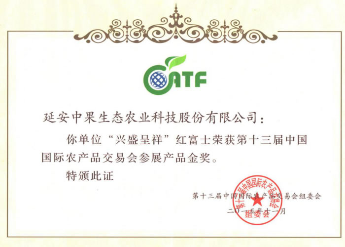 • 國際農(nóng)產(chǎn)品交易會(huì)金獎(jiǎng)